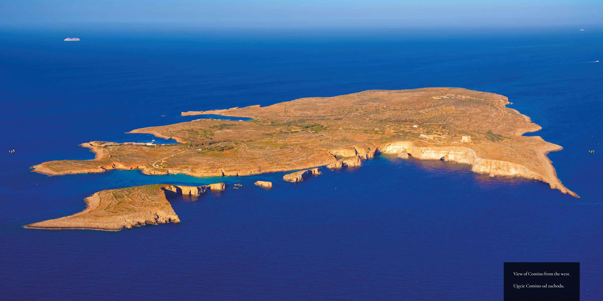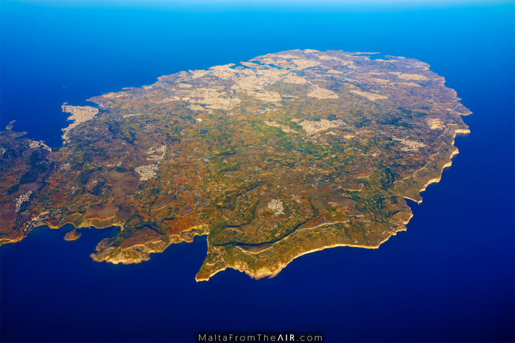 Beyond the main island lies Comino – home to the famous Blue Lagoon, where the intense turquoise water, seen from above, creates one of the most striking views in the Mediterranean.